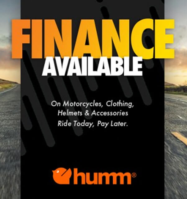Humm is a retail instalment payment plan facility, an easy alternative to paying with cash or credit card for your motorcycle, clothing & accessories. Whether it’s a new motorcycle, helmet, jacket or accessories Humm is there to make finance simple!