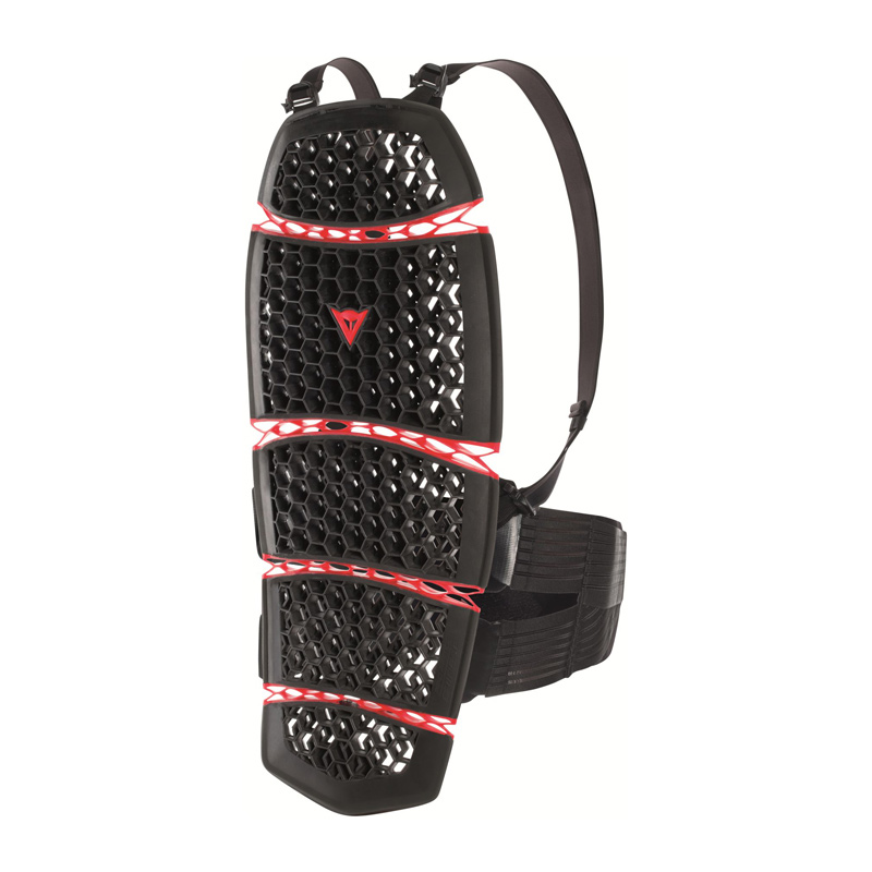 From Dainese—the inventor of the back protector—comes the incredibly comfortable, certified Pro Armor, constructed of expanded nitrile rubber with a perforated structure and a functional, anotomical shape. The protector bends and stretches longitudinally and laterally, and it’s held in place by removable shoulder straps and a removable, adjustable lumbar band.