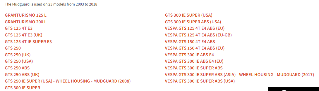 Vespa GTS 250 Front Mudguard